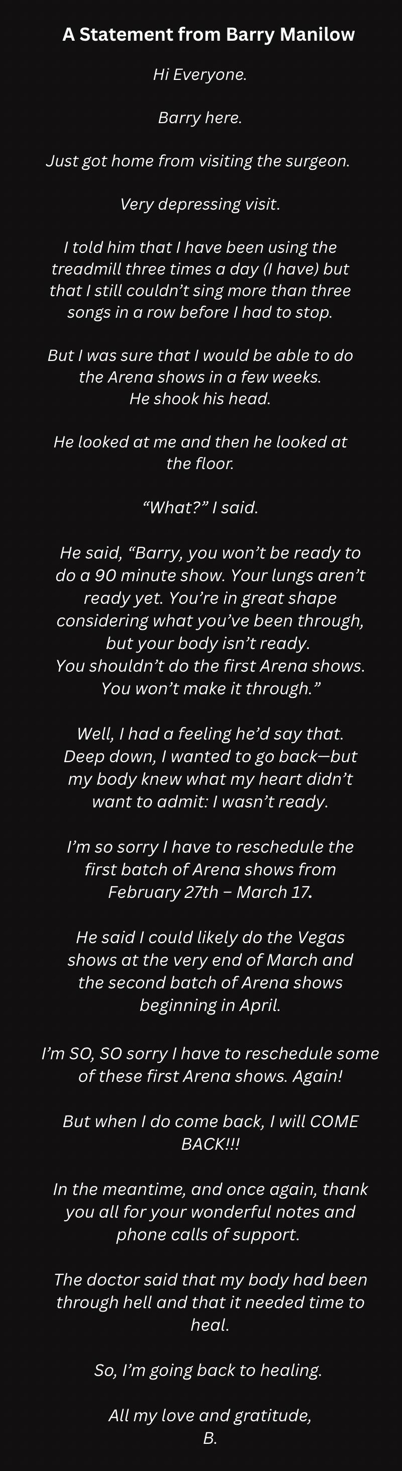 A Statement from Barry Manilow